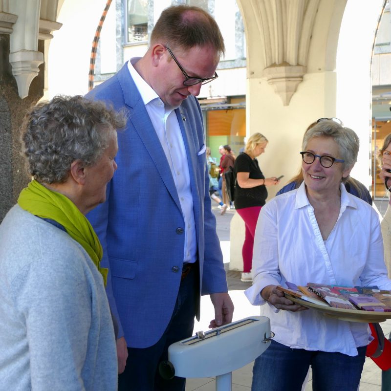 „Deshalb heißt es für uns: Leute kauft fair gehandelte Schokolade! Und deckt euch, je nach Geldbeutel, mit einem Vorrat ein, um unsere Wette zu unterstützen. Bei unserem Bürgermeister Jan Lindenau bedanken wir uns für die Unterstützung und Teilnahme an der Aktion“, ruft Heike Schüttler zum Start der Aktion auf.